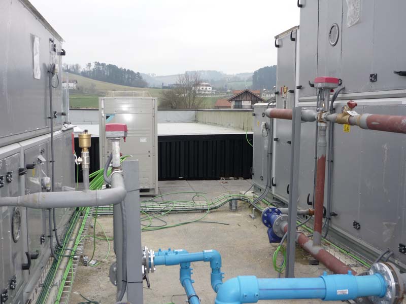 Instalación de climatización, para espacios deportivos, oficinas y piscinas, mediante el montaje de salas de bombas, colectores, redes de tuberías, climatizadoras, sistemas VRV, calderas a gas y pellets (precalentamiento piscinas) y elementos de regulación y control.